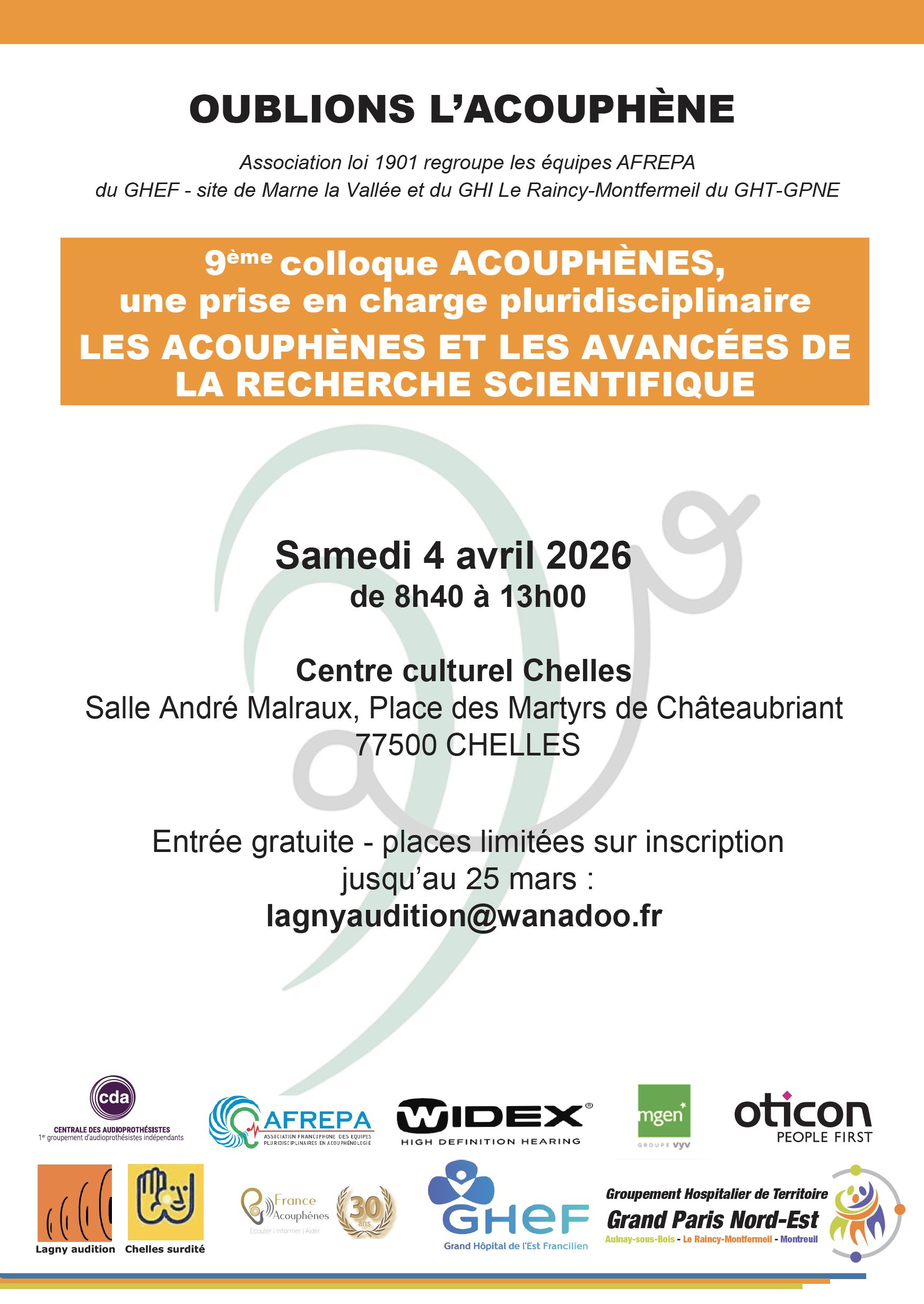 ont le plaisir de vous convier au 9ème Colloque Acouphènes.